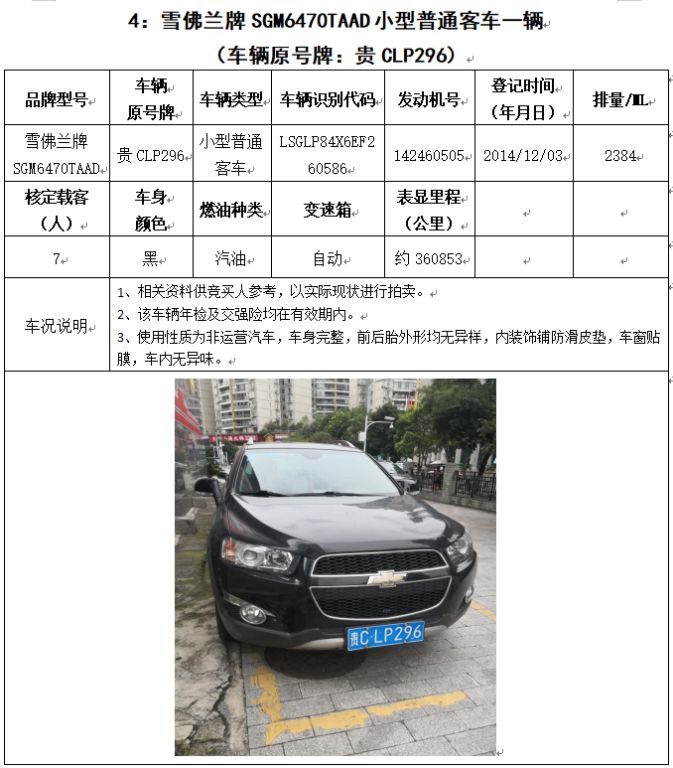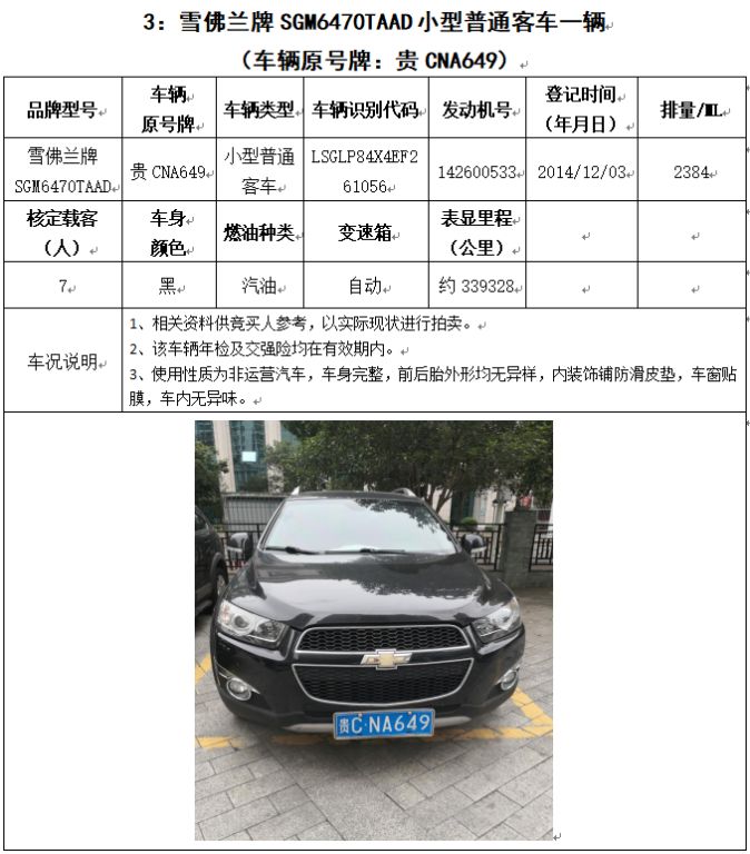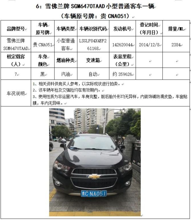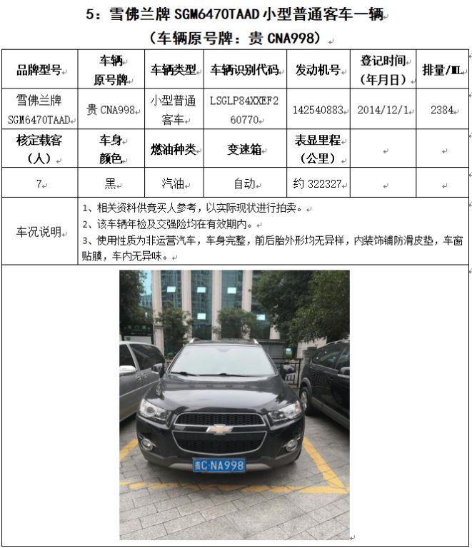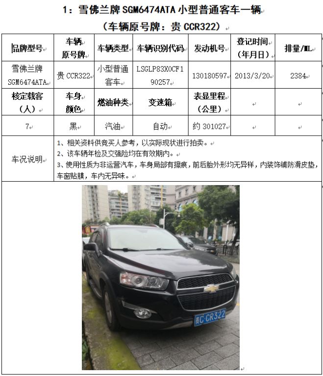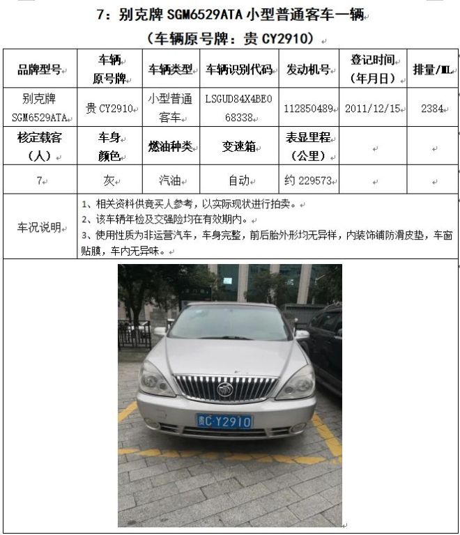 拍品編號1:雪佛蘭牌、別克牌等機(jī)動車7輛(整體拍賣)