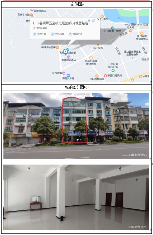 1、江口縣雙江鎮(zhèn)環(huán)城西路商住房一棟,建筑面積:958.93㎡,起拍價:3233457.63元,競買保證金:40萬元。