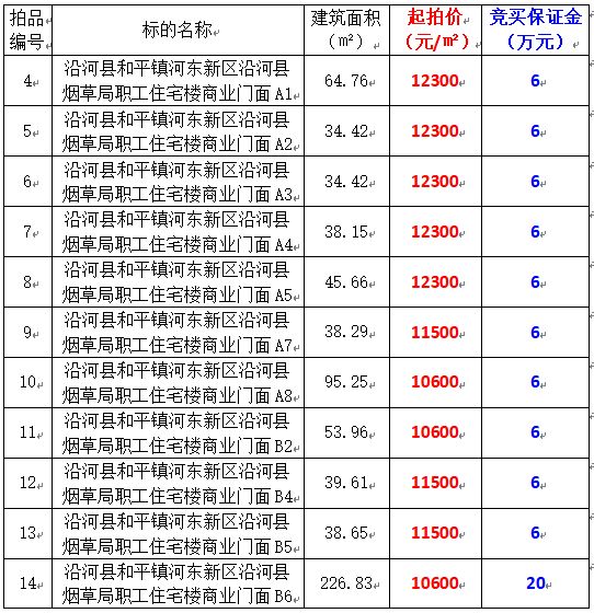 4、沿河縣和平鎮(zhèn)河?xùn)|新區(qū)沿河縣煙草局職工住宅樓商業(yè)門面11間,建筑面積:34.42㎡-226.83㎡,起拍價:10600元/㎡-12300元/㎡,競買保證金:6萬元/間。