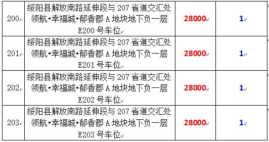 拍品編號34-203:綏陽縣解放南路延伸段與207省道交匯處領(lǐng)航?幸福城?郁香郡A地塊地下負(fù)一層170個車位