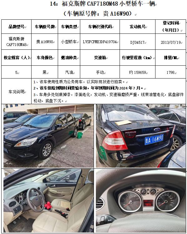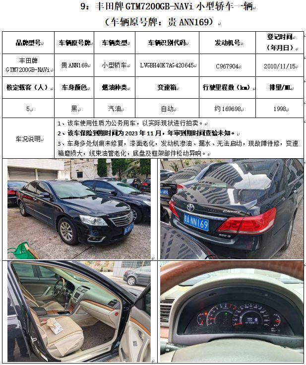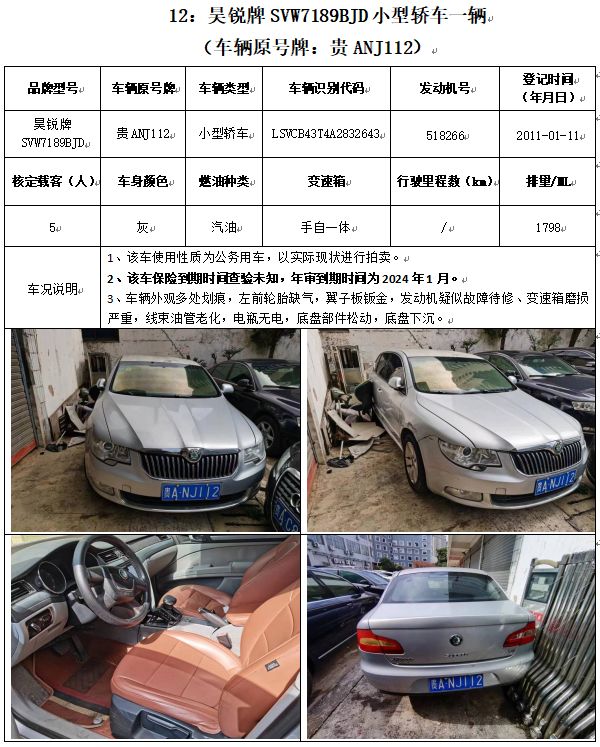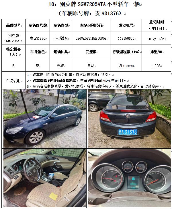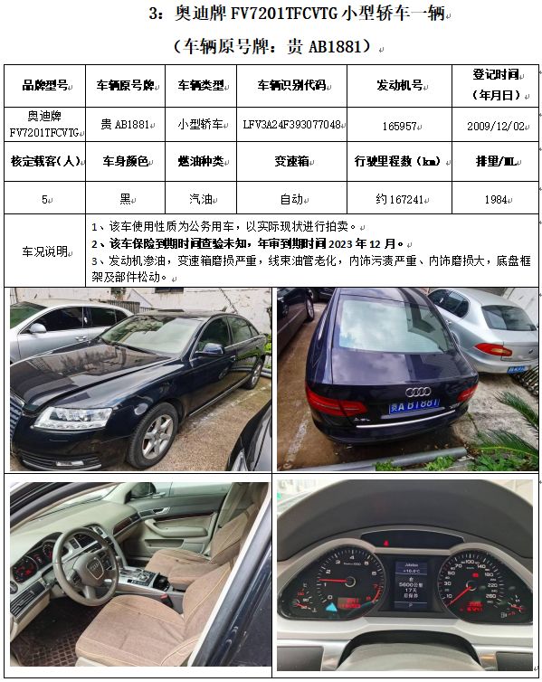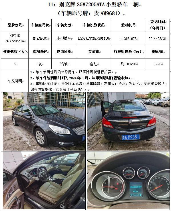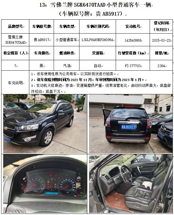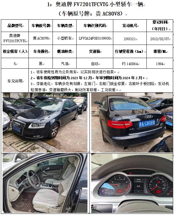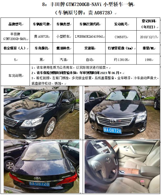 受委托,我公司定于2023年12月19日(星期二)下午15:00在貴州省貴陽市中華南路20號新大陸數(shù)碼廣場10樓D座會議室公開拍賣以下標的: