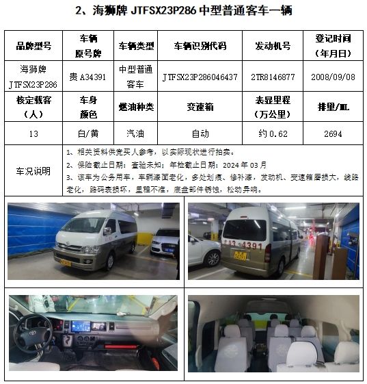 拍品編號1:普瑞維亞牌、海獅牌機動車共計2輛(整體拍賣)
