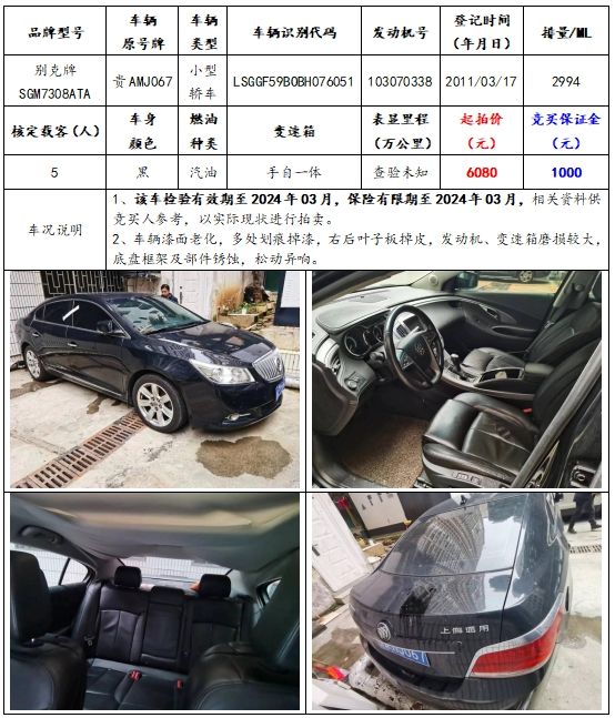 拍品編號(hào)1:別克牌SGM7308ATA小型轎車(chē)一輛;
