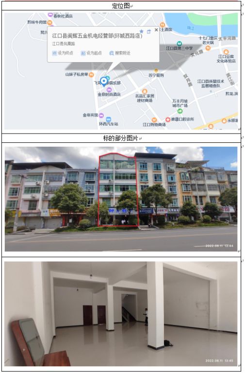 2、江口縣雙江鎮(zhèn)龍井廣場(chǎng)江源山水20棟1層2號(hào)一樓商業(yè)門面一間,建筑面積:744.3㎡,起拍價(jià)2423601元,競(jìng)買保證金:30萬元。