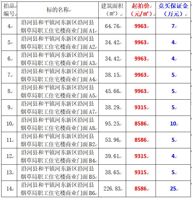 4、沿河縣和平鎮(zhèn)河?xùn)|新區(qū)沿河縣煙草局職工住宅樓商業(yè)門面11間,建筑面積:34.42㎡-226.83㎡,起拍價(jià):8586元/㎡-9963元/㎡,競(jìng)買保證金:4萬元-25萬元/間。
