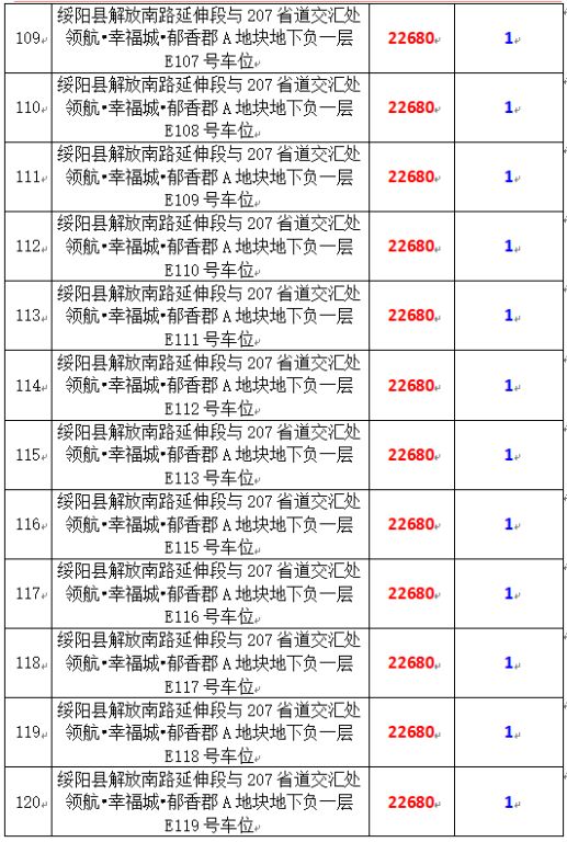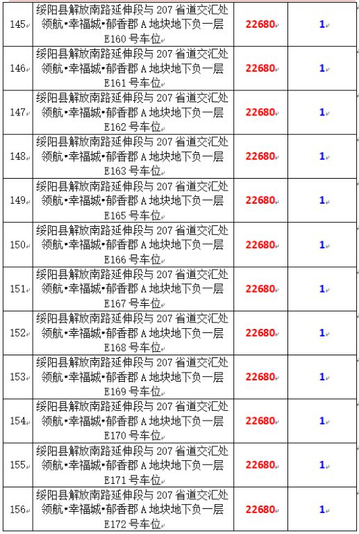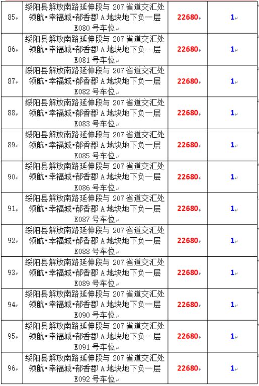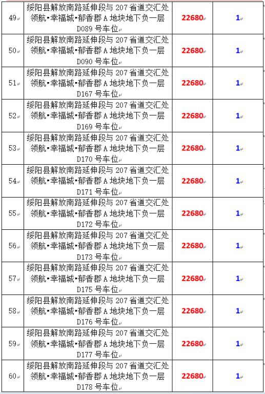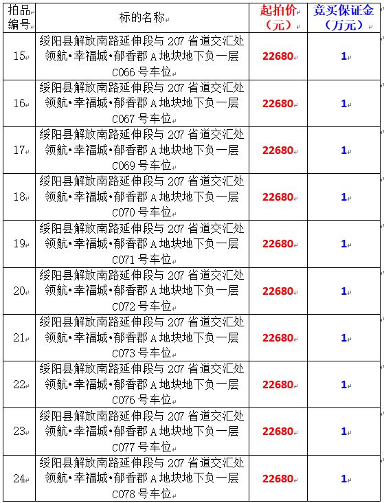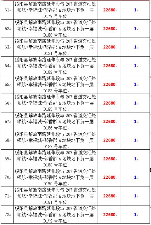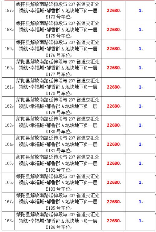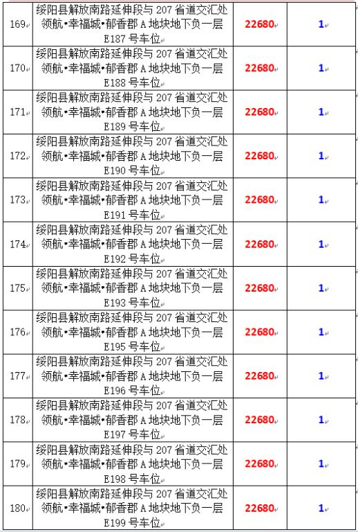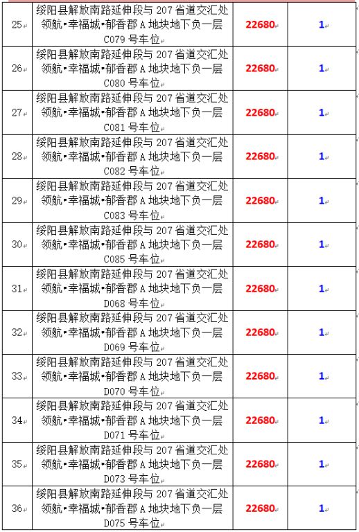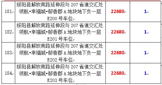 5、綏陽縣解放南路延伸段與207省道交匯處領(lǐng)航?幸福城?郁香郡A地塊地下負(fù)一層170個(gè)車位,起拍價(jià):22680元/個(gè),競(jìng)買保證金:1萬元/個(gè)。