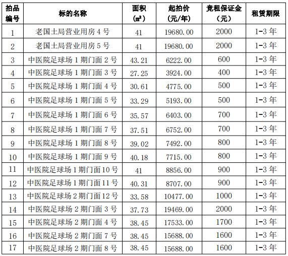 【03月15日】遵義市習水縣老國土局4號、5號營業(yè)用房和中醫(yī)院對面足球場部分門面等經(jīng)營性資產(chǎn)公開招租電子競價公告