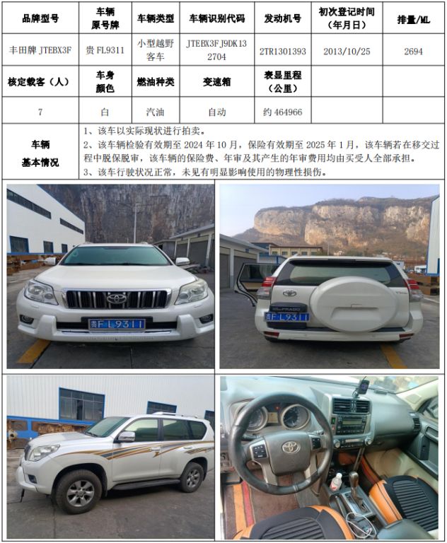 拍品編號1:豐田牌JTEBX3F小型越野客車、東風(fēng)牌ZN1033UCZ4輕型普通貨車,共計2輛,整體拍賣