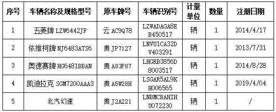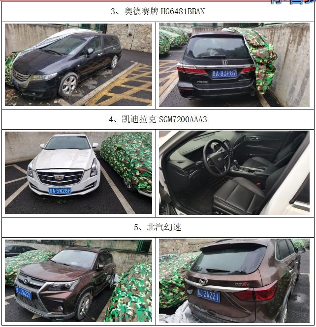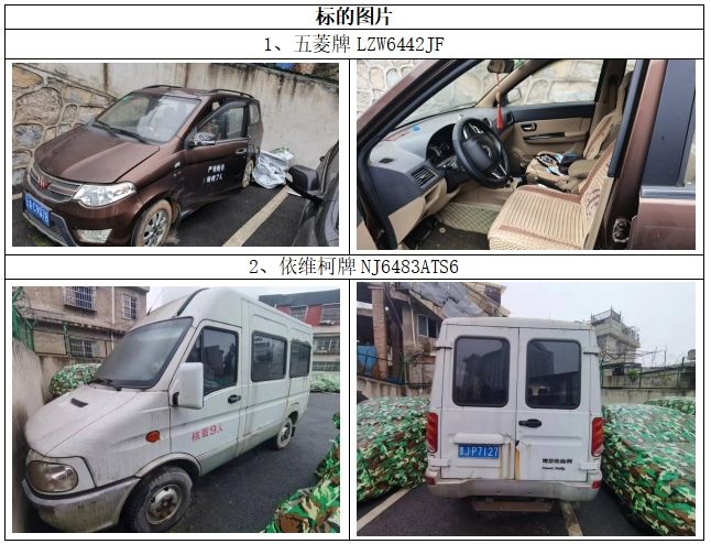 拍賣編號1:五菱牌、依維柯牌、奧德賽牌、凱迪拉克牌、北汽牌共五輛機(jī)動車整體拍賣