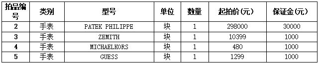 拍品編號2-5:PATEK PHILIPPE、ZEMITH、MICHAELKORS、GUESS品牌手表各一塊