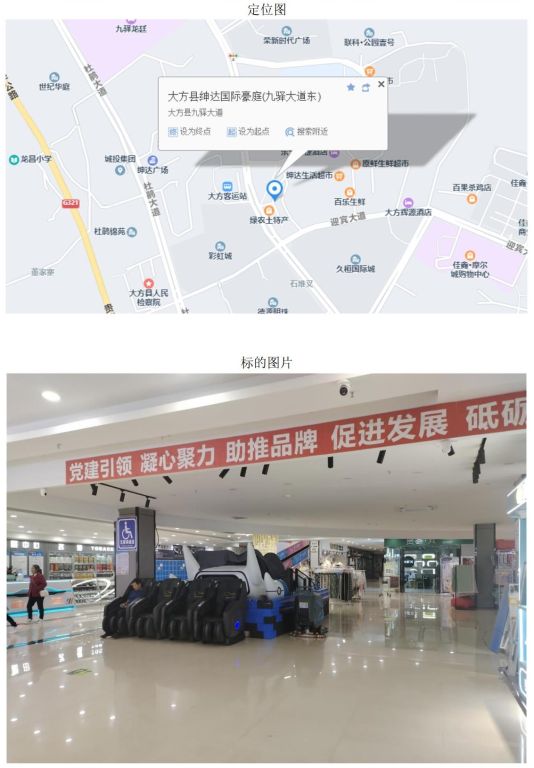 標(biāo)的位于大方縣紅旗街道辦事處杜鵑廣場(chǎng)2層202,房權(quán)證號(hào):黔(2022)大方縣不動(dòng)產(chǎn)權(quán)第0001431號(hào),建筑面積:5535.96㎡,權(quán)利類型:國(guó)有建設(shè)用地使用權(quán)/房屋所有權(quán),權(quán)利性質(zhì):出讓/市場(chǎng)化商品房,用途:其他商服用地/商業(yè)服務(wù)。