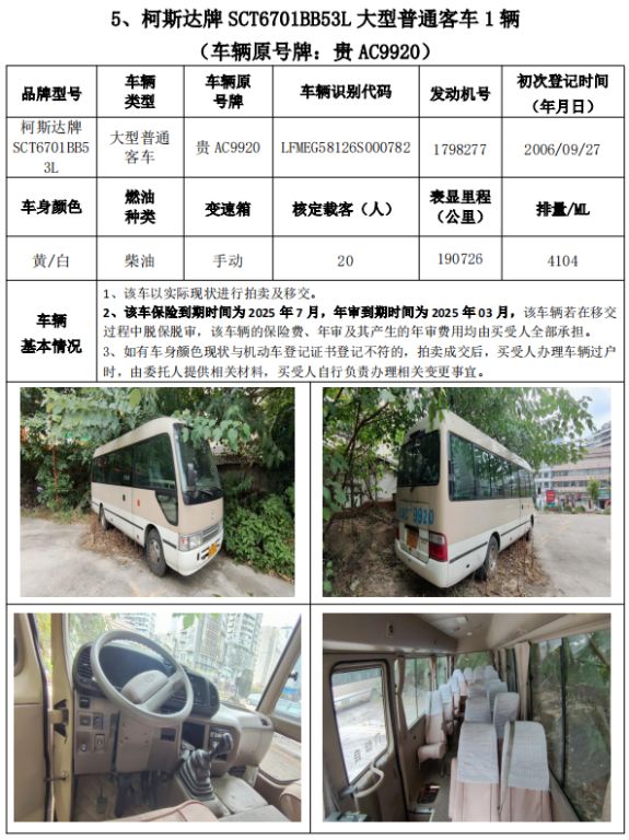 受委托,我公司定于2024年11月8日(星期五)下午14:30時,在貴州省公共資源交易中心開標室11室(貴陽市南明區(qū)遵義路)公開拍賣以下標的: