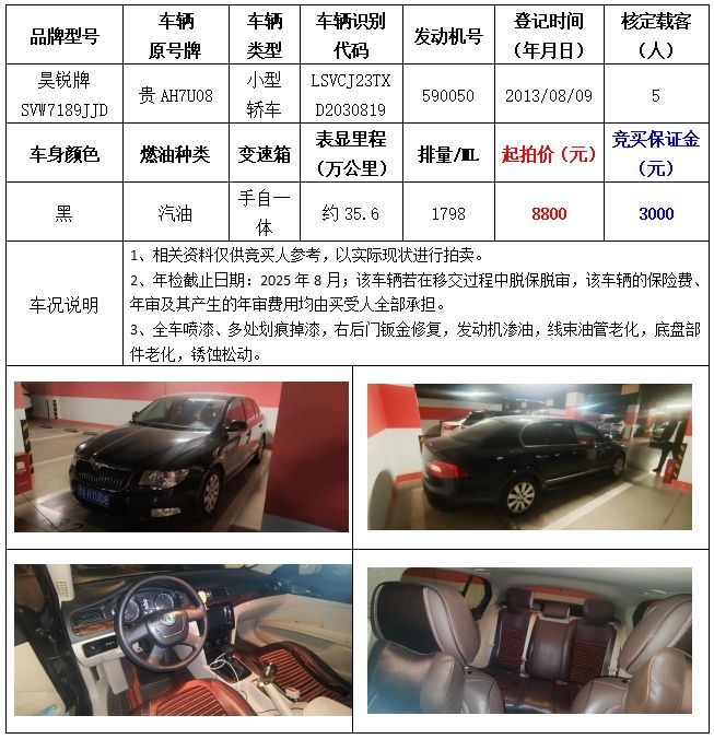 拍品編號4:昊銳牌SVW7189JJD小型轎車一輛