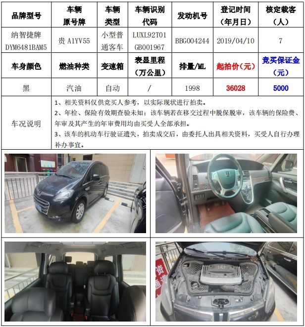 拍品編號5:納智捷牌DYM6481BAM5小型普通客車一輛