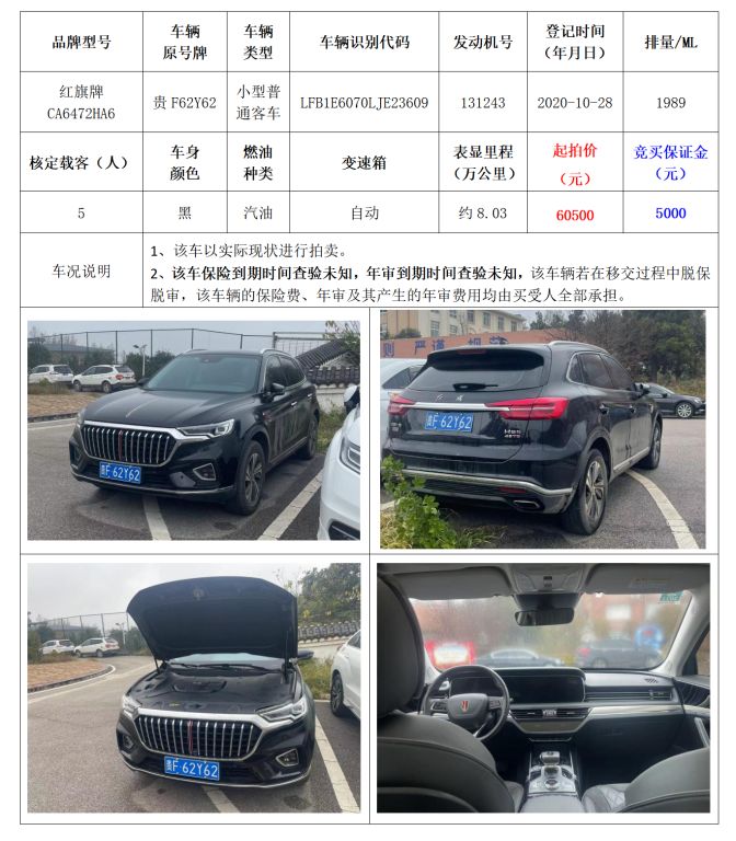 拍品編號(hào)1:紅旗牌CA6472HA6小型普通客車(chē)1輛