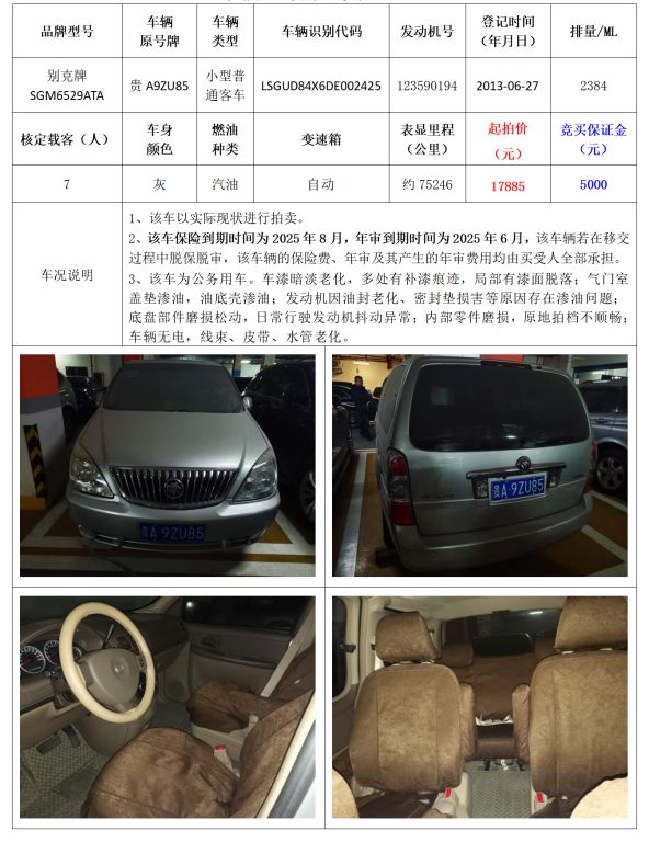 拍品編號(hào)5:別克牌SGM6529ATA小型普通客車(chē)1輛