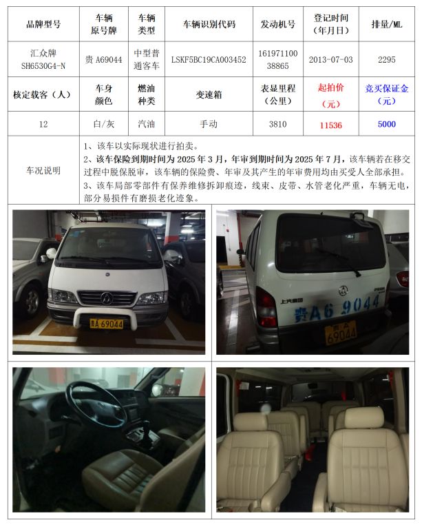 拍品編號(hào)2:匯眾牌SH6530G4-N中型普通客車(chē)1輛