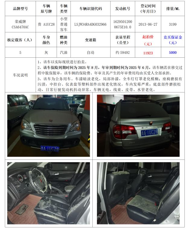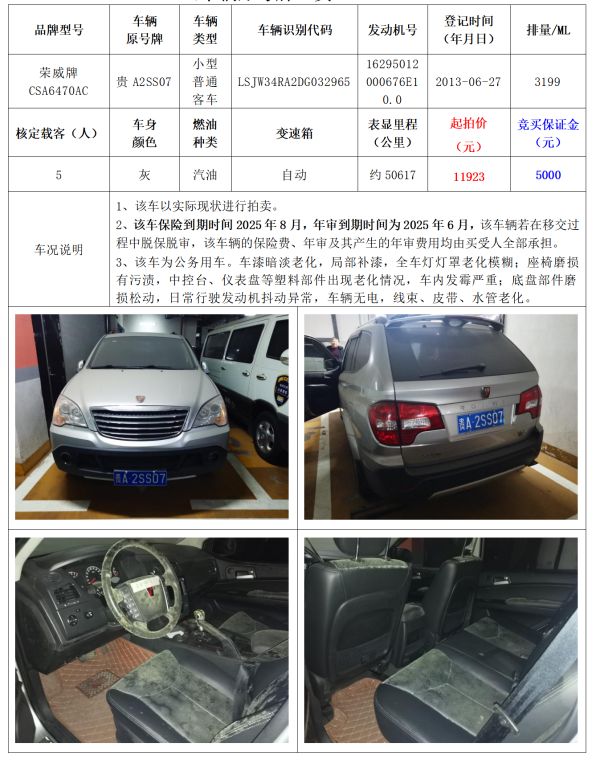 拍品編號(hào)3:榮威牌CSA6470AC小型普通客車(chē)1輛