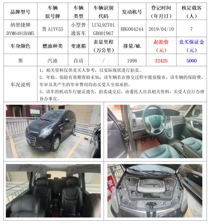 拍品編號(hào)6:納智捷牌DYM6481BAM5小型普通客車(chē)1輛