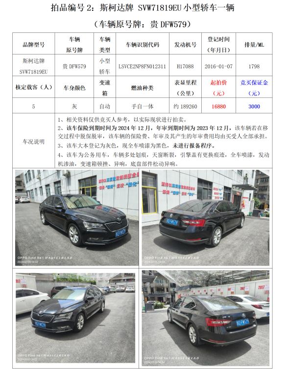 2、斯柯達牌SVW71819EU小型轎車1輛;