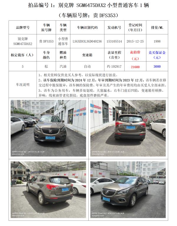 1、別克牌SGM6475DAX2小型普通客車1輛;