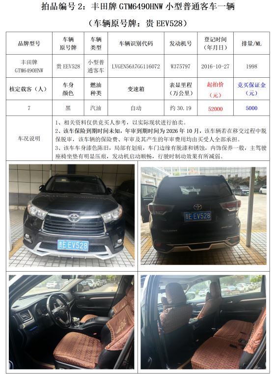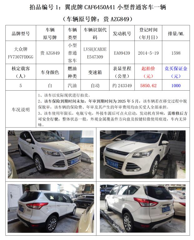 1、翼虎牌CAF6450A41小型普通客車1輛;