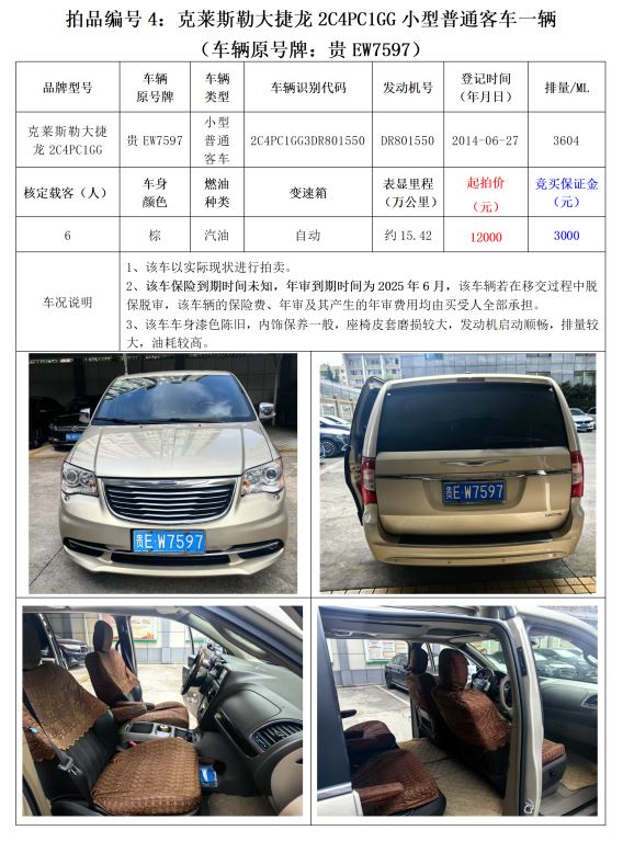 4、克萊斯勒大捷龍2C4PC1GG小型普通客車1輛;