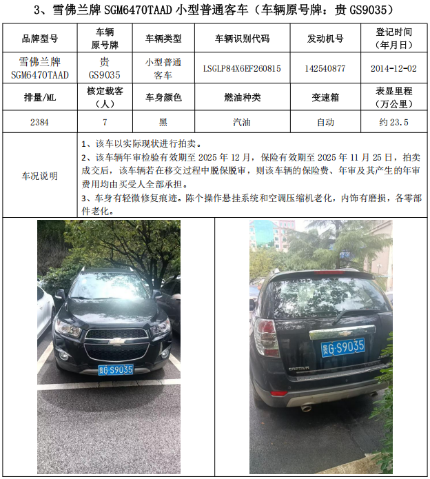 拍品編號3:別克牌SGM6521ATA小型普通客車1輛、雪佛蘭牌SGM6470TAAD小型普通客車2輛,共計3輛,整體拍賣