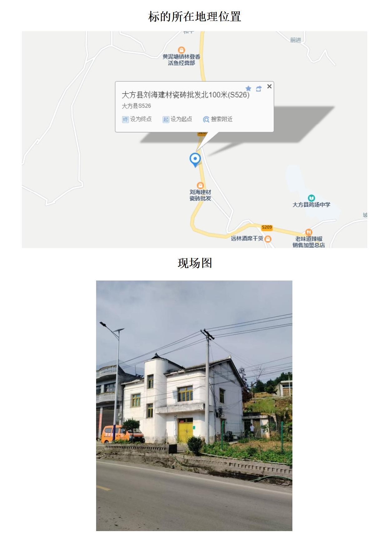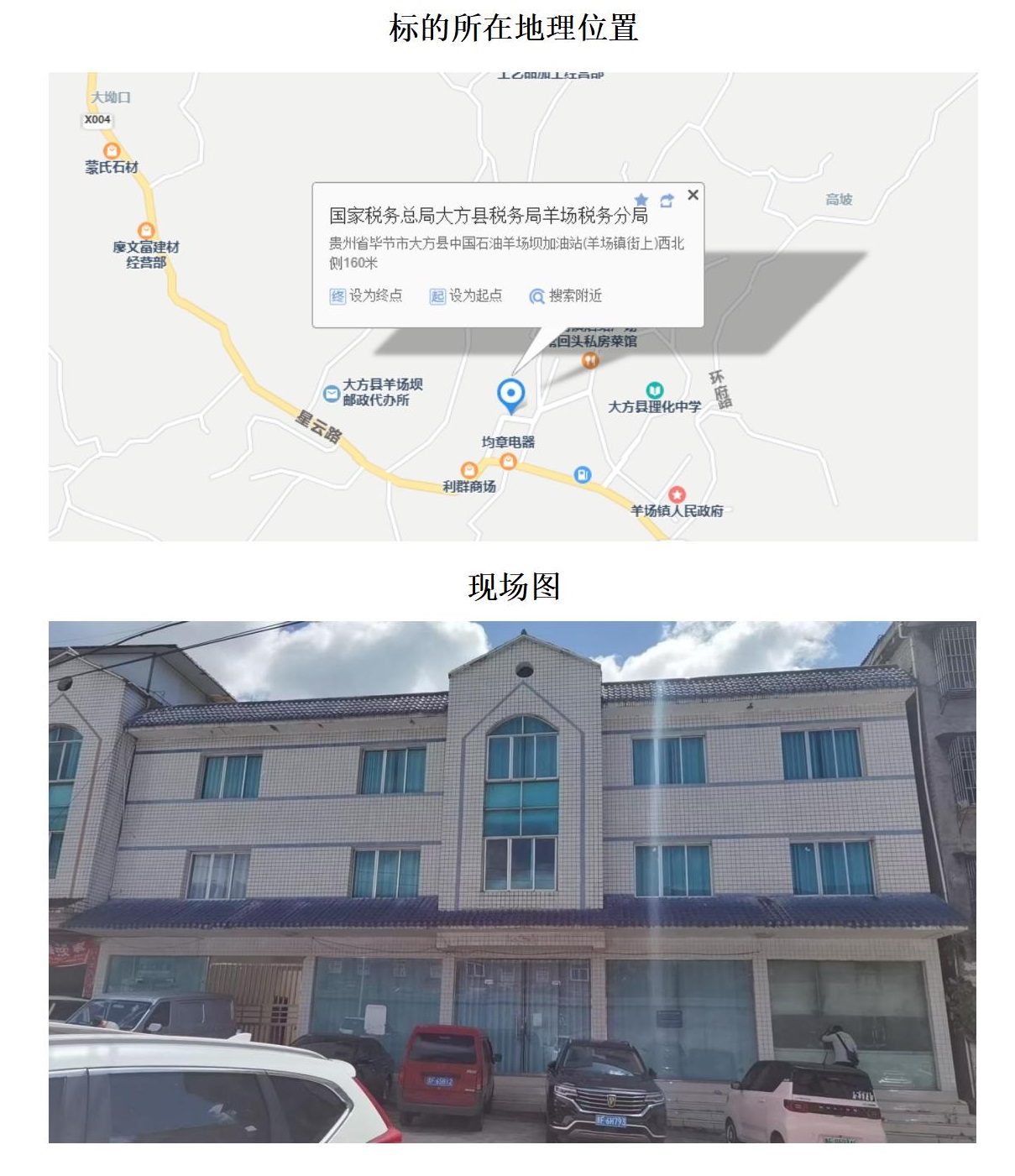 標(biāo)的位于大方縣長(zhǎng)石鎮(zhèn)長(zhǎng)青小學(xué)。建筑面積:658.09㎡,土地面積:2322.48㎡,建筑結(jié)構(gòu)為混合結(jié)構(gòu),共2棟,總層數(shù)分別為3層和1層,房屋用途為住宅,土地性質(zhì)為劃撥。