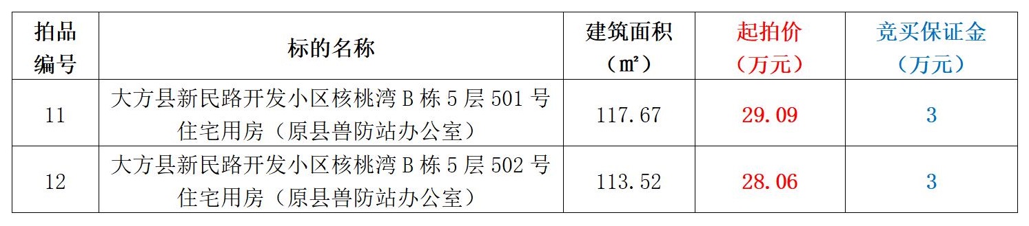 拍品編號(hào)11-12:大方縣新民路開發(fā)小區(qū)核桃灣B棟5層501、502號(hào)住宅用房(原縣獸防站辦公室)