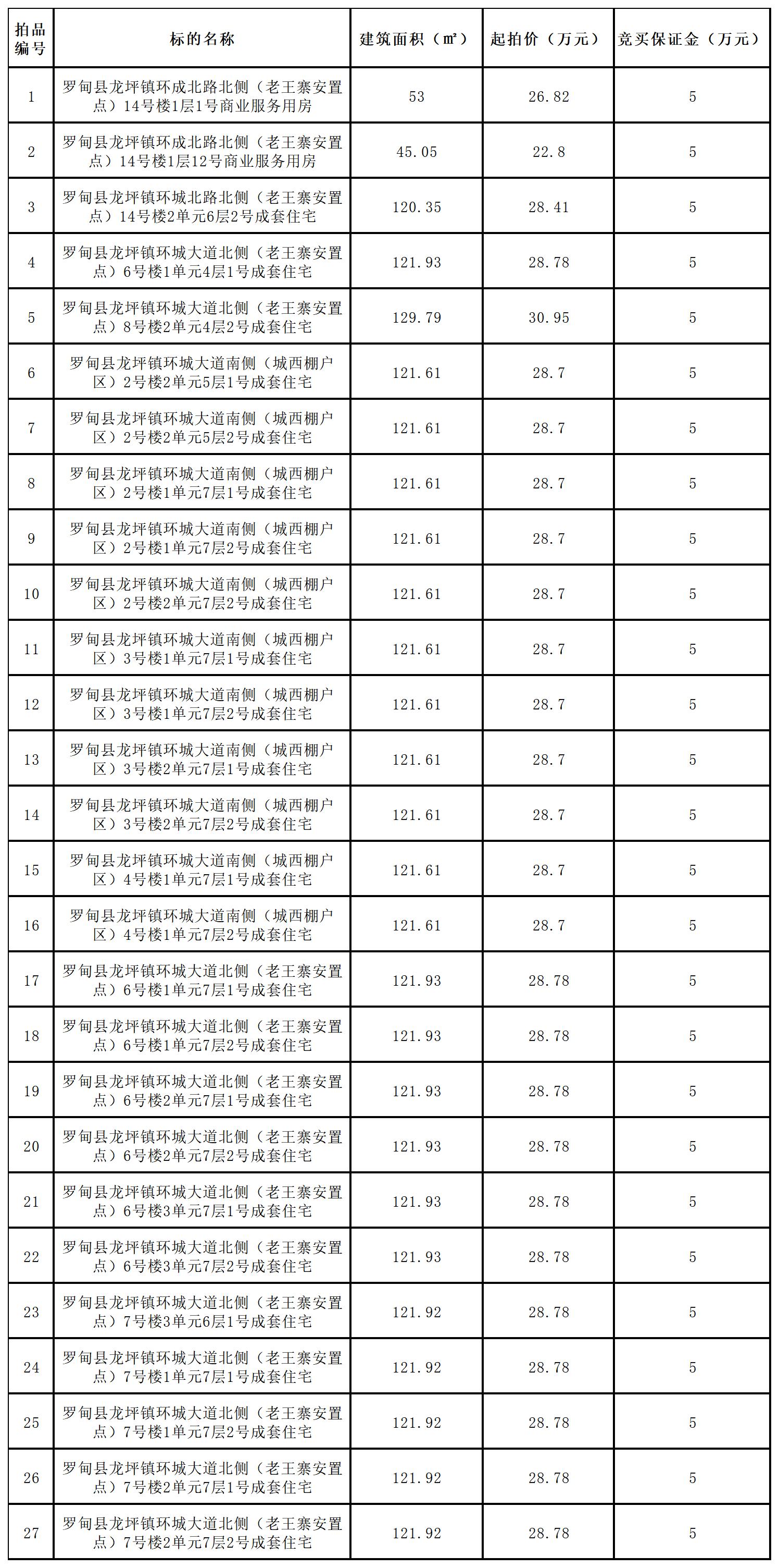 【01月09日】羅甸縣龍坪鎮(zhèn)環(huán)成北路北側(cè)和環(huán)城大道北側(cè)(老王寨安置點)、環(huán)城大道南側(cè)(城西棚戶區(qū))商業(yè)服務(wù)用房、成套住宅 拍賣公告