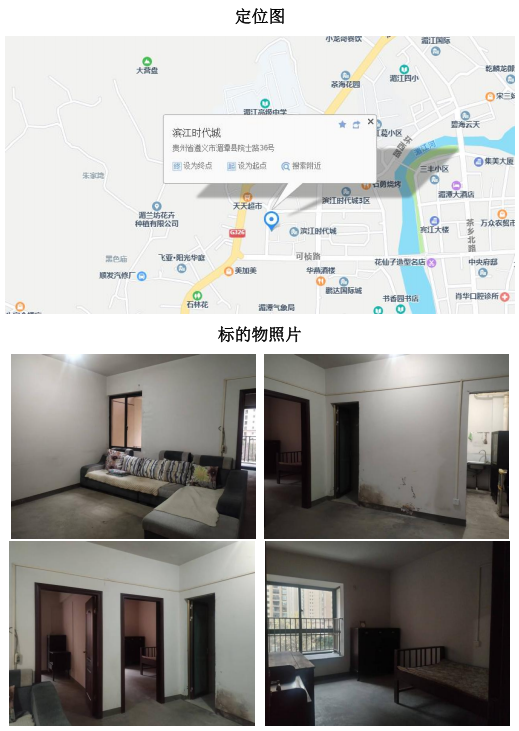 標(biāo)的坐落于貴州省遵義市湄潭縣湄江街道西城區(qū)濱江時(shí)代城一期A2-5棟4-4號,房屋總層數(shù)為31層,拍賣標(biāo)的所在層數(shù)為4層,權(quán)利類型:國有建設(shè)用地使用權(quán)/房屋(構(gòu)筑物)所有權(quán);權(quán)利性質(zhì):國有土地/出讓/市場化商品房;用途:城鎮(zhèn)住宅用地/成套住宅;房屋建筑面積:79.65㎡,房屋結(jié)構(gòu):鋼筋混凝土結(jié)構(gòu)。