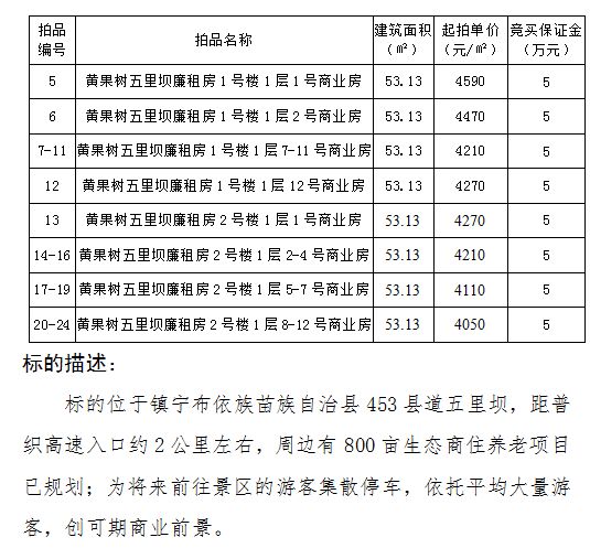 黃果樹旅游區(qū)國有商業(yè)用房拍賣公告
