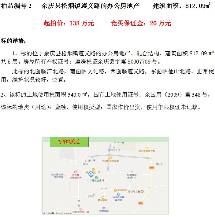 二、余慶縣松煙鎮(zhèn)遵義路的辦公房地產(chǎn)(建筑面積812.09㎡);